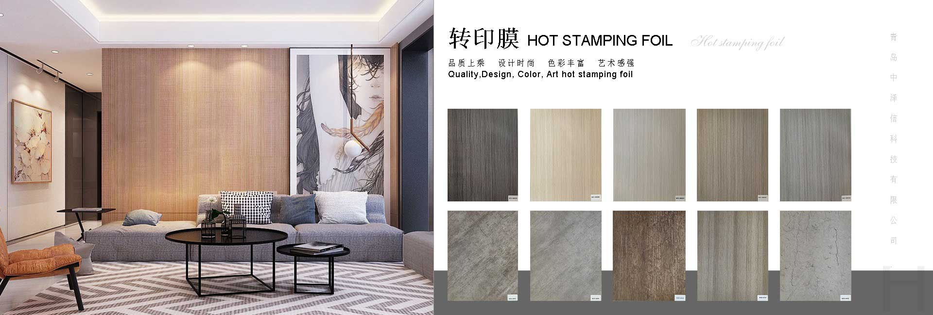 青島中澤信科技有限公司地處中國山東省青島市,致力于多種裝飾膜的研發(fā)和生產(chǎn),所生產(chǎn)的熱轉(zhuǎn)印膜和包覆膜廣泛應(yīng)用于多種家裝材料如建材、家具、裝飾框等。本公司擁有60多名專業(yè)工人,10000平米標(biāo)準(zhǔn)廠房,20年印刷行業(yè)經(jīng)驗,15年熱轉(zhuǎn)印行業(yè)經(jīng)驗,配備8套8色印刷生產(chǎn)線,采用韓國技術(shù)以及環(huán)保級原材料具備,ISO認(rèn)證。工廠距離青島國際機場和青島港不足一小時車距這些都是我公司能為全球客戶提供高質(zhì)量產(chǎn)品以及維持良好合作的重要因素。